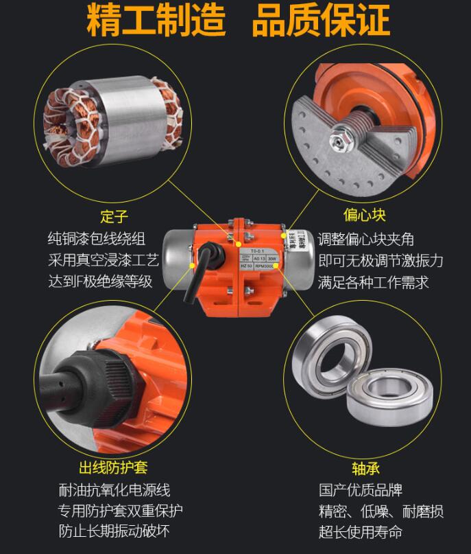 ⒋受電源波動(dòng)的影響小,電磁式激振器會(huì)由于電壓變化而引起激振力發(fā)生大的變化,但震動(dòng)電機(jī)中,這種變化就非常小。